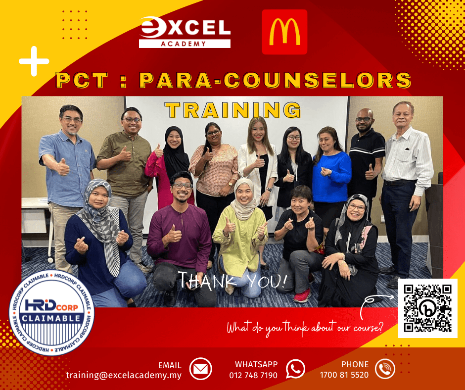 We have successfully wrapped our 5 days of “𝗣𝗖𝗧: 𝗣𝗔𝗥𝗔-𝗖𝗼𝘂𝗻𝘀𝗲𝗹𝗼𝗿𝘀 𝗧𝗿𝗮𝗶𝗻𝗶𝗻𝗴” from the 17th to the 21st of October with 𝗠𝗰𝗗𝗼𝗻𝗮𝗹𝗱’𝘀 𝗠𝗮𝗹𝗮𝘆𝘀𝗶𝗮. We hope that you find the training beneficial and can encourage you towards better work performance! 🥳