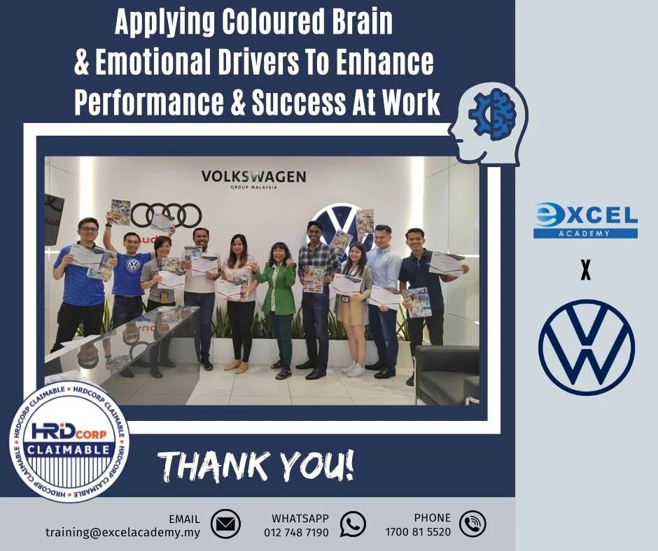 #HRDCorpClaimableCourse #ExcelAcademy #inhousetraining #ApplyingColouredBrain&EmotionalDriversToEnhancePerformance&SuccessAtWork #VolkswagenPassengerCarsMalaysiaSdnBhd