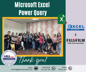 We would like to thank FUJIFILM Business Innovation Malaysia Sdn Bhd for choosing us to conduct the “Microsoft Excel Power Query” training on the last 18 & 19 of May 👏🏻.