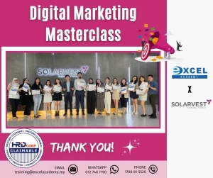 It’s a successful wrap for the ‘Digital Marketing Masterclass’ training with Solarvest Energy Sdn Bhd, and we can’t thank you enough! Big applause to our dedicated expert trainer, Mr. Alexander Ang and our participants for the work well done throughout the two-days training (24 & 25 July)!