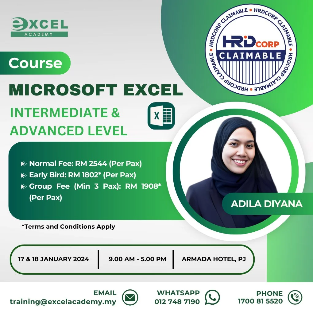 #excelacademy #excelacademycourses #microsoftexcel #professionalcourses #trainingcourses #publiccourses #inhousecourses #HRDCorpClaimable