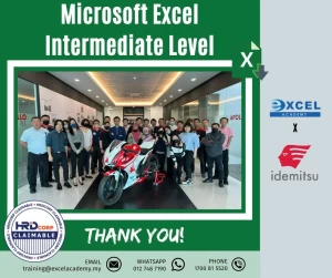 Another congratulation and thank you to Idemitsu Lube (M) Sdn Bhd for completing the “Microsoft Excel Intermediate Level” training yesterday! We really appreciate you choosing us as your training provider.