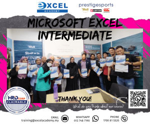 Yesterday marked the end of our ‘Microsoft Excel Intermediate’ training with Prestige Sports Sdn Bhd. Even though it’s a short session, we hope that you found the training beneficial and are able to apply it for better work performance. Congratulations on the work well done! 😉👍