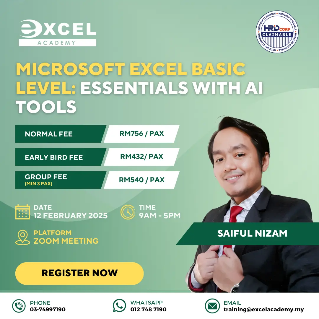 HRD Corp Claimable – Microsoft Excel Basic Level: Essentials With AI Tools