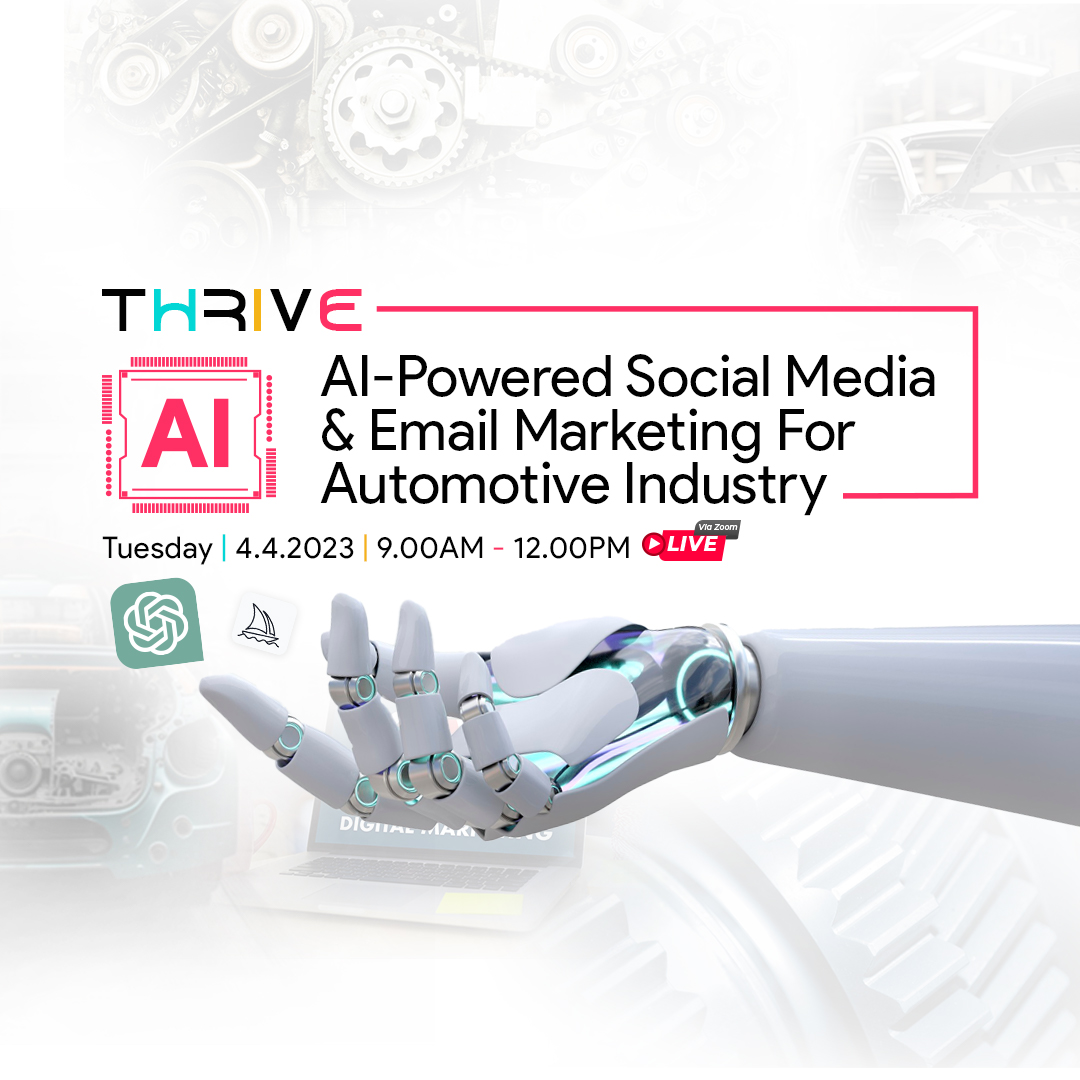 Are you ready to take your dealership to the next level and skyrocket your sales? Say goodbye to the frustration of seasonal sales slump, lacklustre dealership recognition, and low marketing ROI with THRIVE Conference: AI-Powered Social Media & Email Marketing for Automotive Industry!